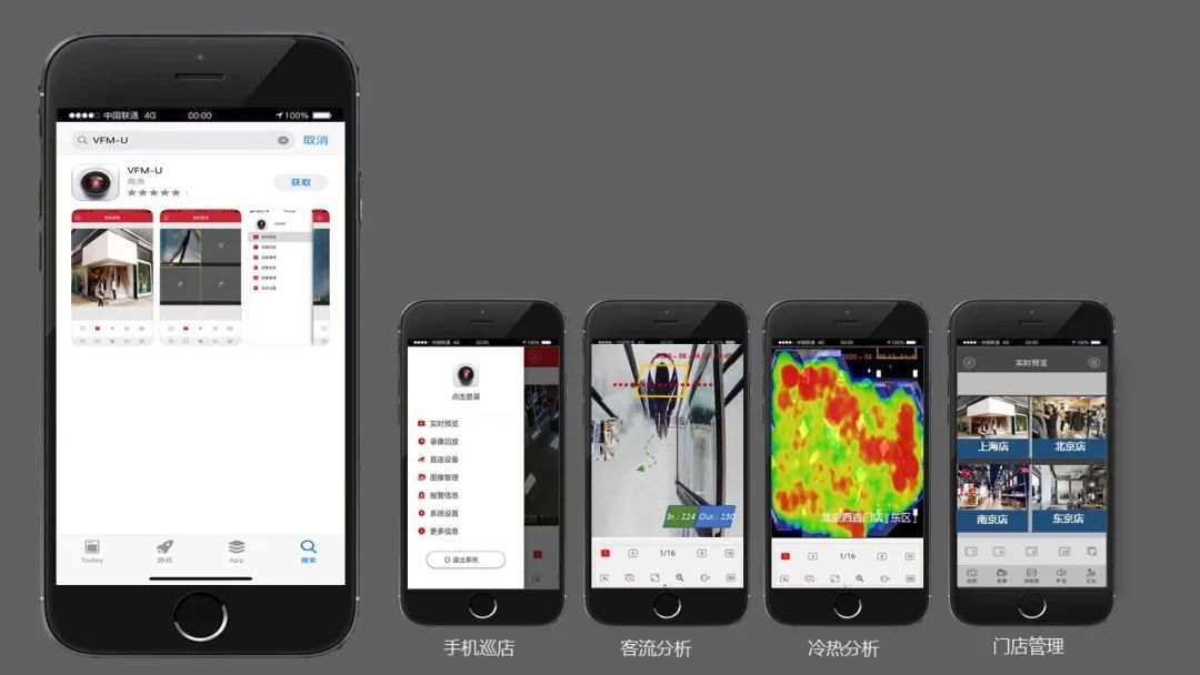 VFM 视频监控中心是304.cam永利安防免费视频监控平台APG-AS300 和 定制视频监控平台VFS-B3000 中的移动端软件增强模块,该系统可与304.cam永利安防品牌摄像机实现快速视频接入,实现手机移动端访问门店进行视频查看、全国分店集中管理,还可快速与304.cam永利安防AI功能型摄像机实现快速对接,实现随地随地查看门店进出客流量等视频叠加数据,实时分析监测数据,可用于实时动态跟踪进出门店的顾客消费行为与偏爱,辅助了解实体门店内的消费行为, 辅助店铺精准营销及管理运营策略优化。